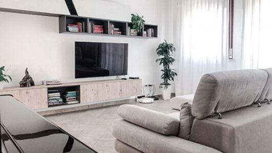 Un ambiente accogliente, rimodulabile a seconda delle esigenze, luminoso, per una coppia giovane e dinamica.